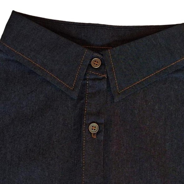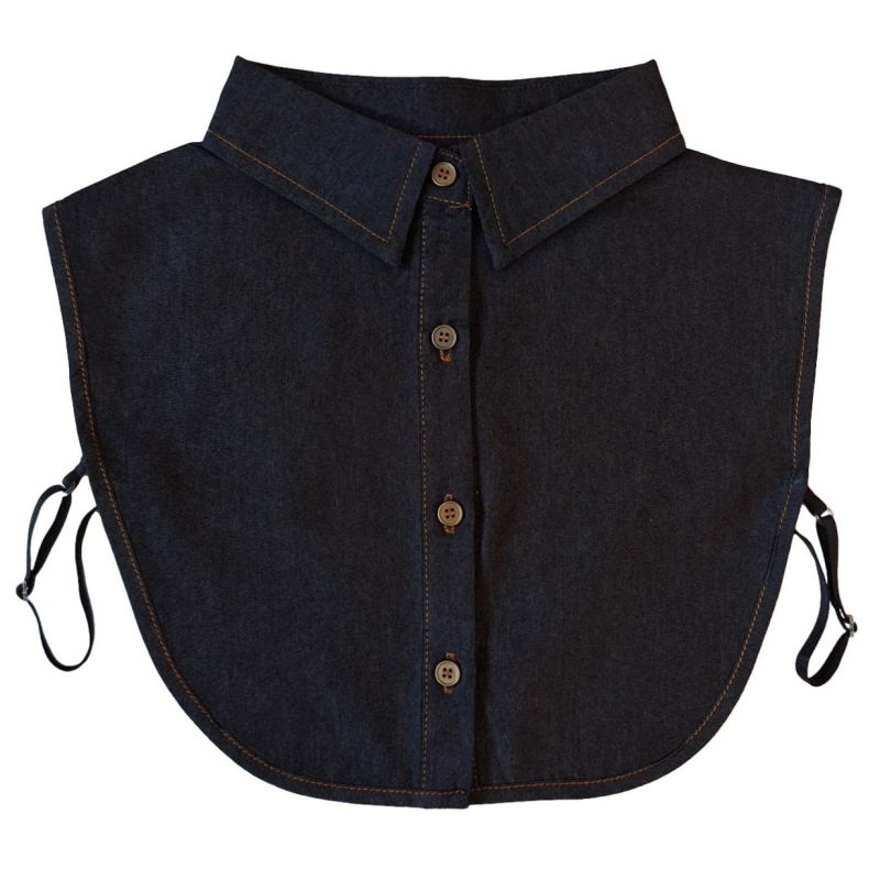 Dit donkergrijze denim spijkerstofkraagje is de perfecte accessoire om een basic trui of jurk moeiteloos te transformeren, zonder de noodzaak van een volledig overhemd.