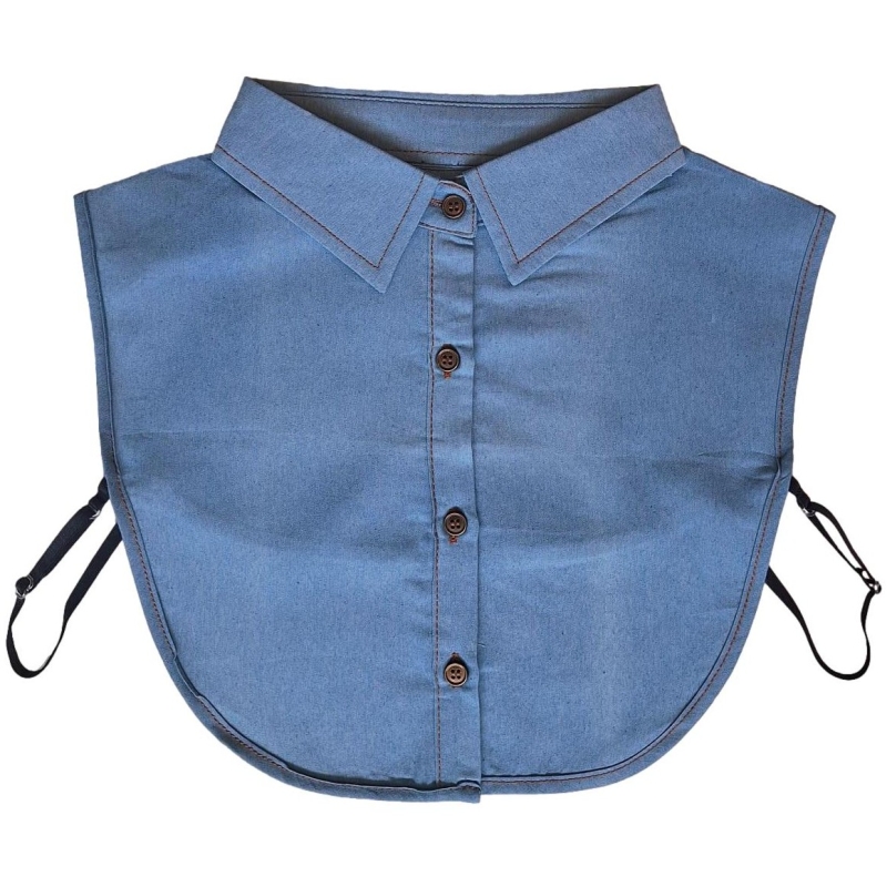 Dit lichtblauwe denim spijkerstofkraagje is de perfecte accessoire om een basic trui of jurk moeiteloos te transformeren, zonder de noodzaak van een volledig overhemd.