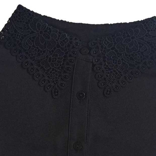 Voeg een vleugje vintage elegantie toe aan elke outfit met dit charmante zwarte dameskraagje. Perfect om een eenvoudige trui of jurk direct een stijlvolle upgrade te geven. Het zwarte dameskraagje combineert prachtig met diverse kleuren, terwijl het delicate kanten detail zorgt voor een verfijnde afwerking.